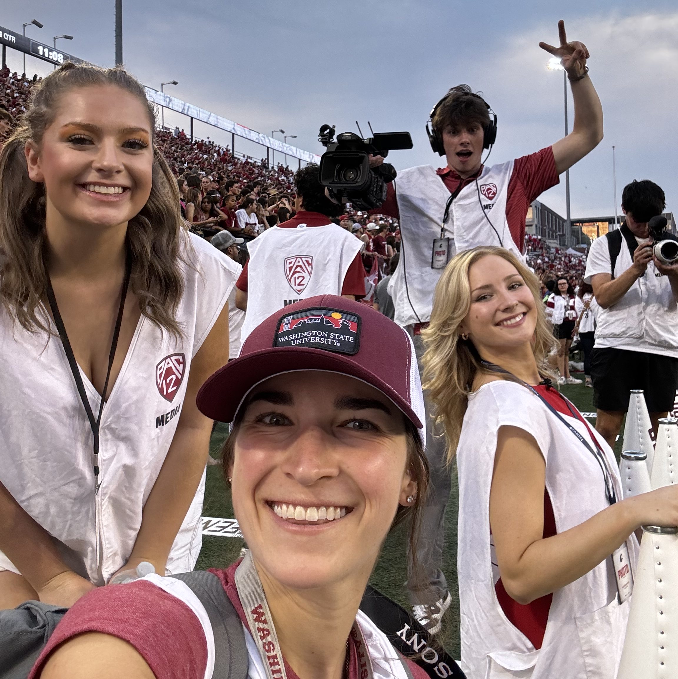 As my senior year approached, I had the option to graduate after the fall 2024 semester. I did not feel like I did enough. I decided that to stay the full year and be just as involved. I dove into extracurriculars; I applied to be the VP of Marketing and Alumni Affairs for Cable 8, I got more into my creative internship with WSU Athletics, I joined ZZUCRU on their Instagram team and I returned as a Murrow Ambassador. I got more experience on the sidelines of WSU Football, Volleyball, Basketball and Baseball games.